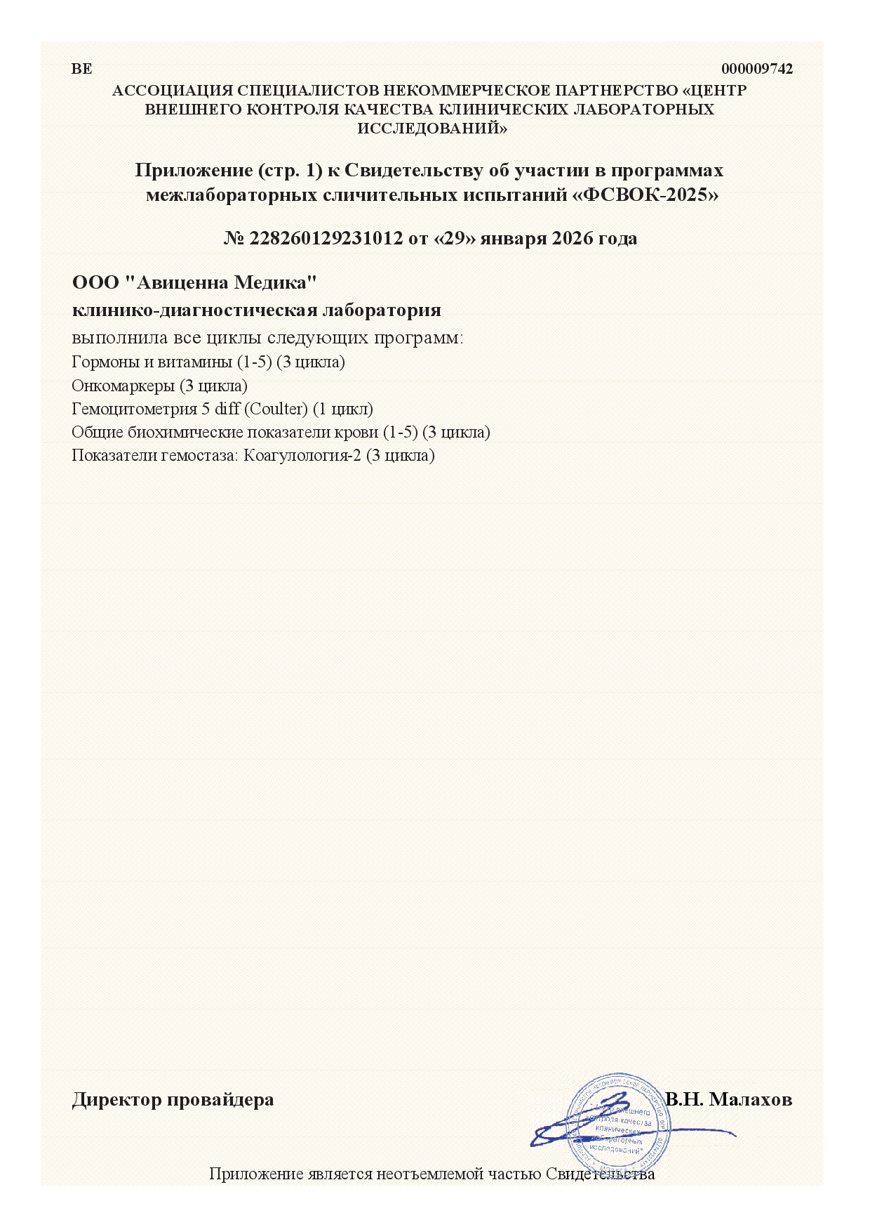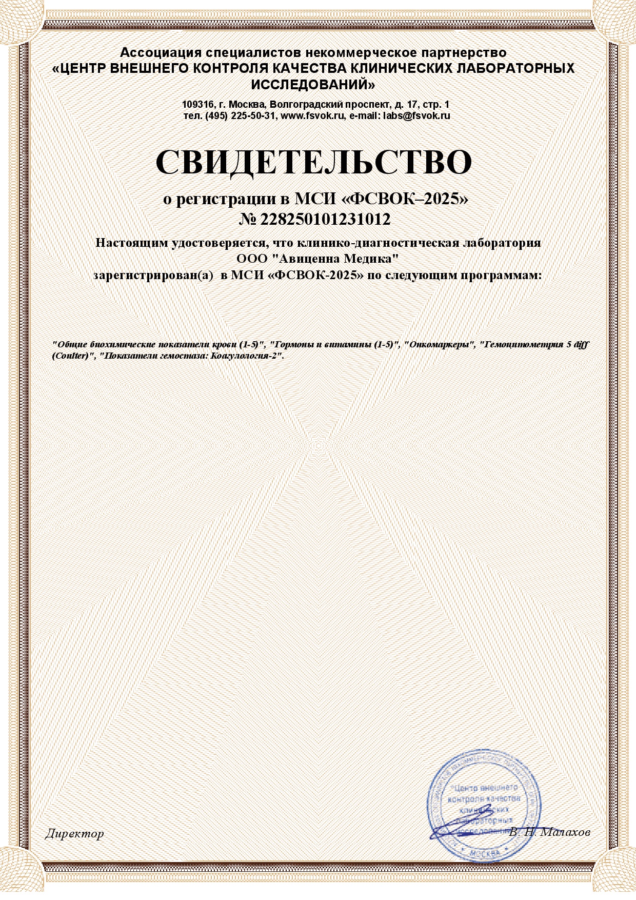 Сертификаты лаборатории Авиценна